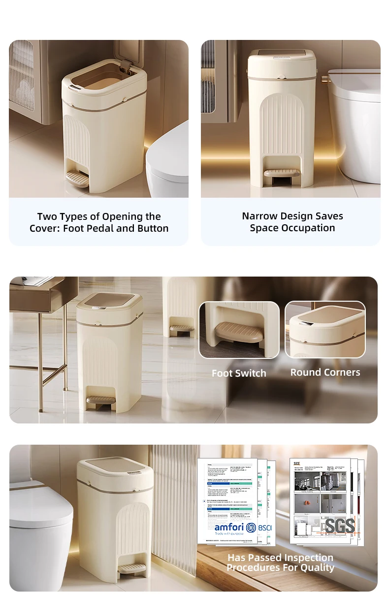 Κάδος απορριμμάτων WANUO χωρητικότητας 15L με πλήκτρο πίεσης, για μπάνιο/κουζίνα, με καπάκι πίεσης, από πλαστικό |