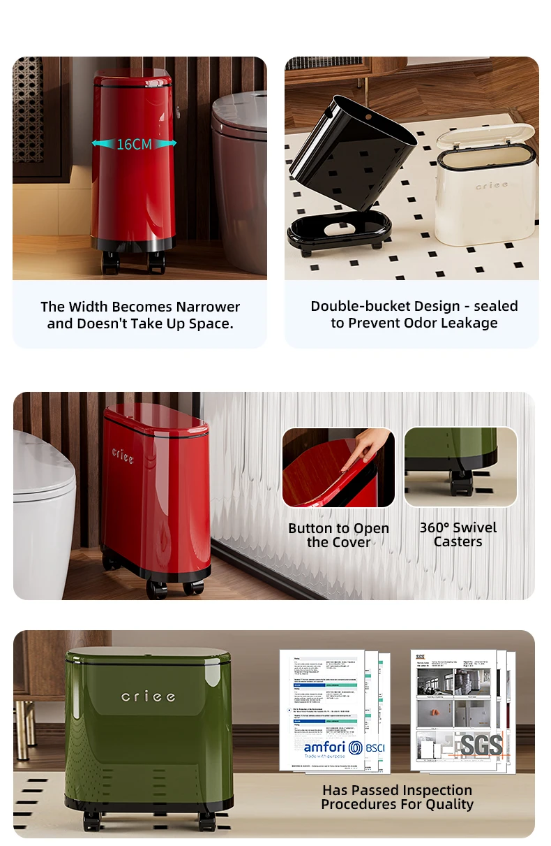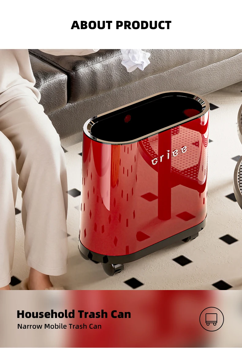 Λεπτός Σχεδιασμός Κάδου WANUO, Ρετρό Κάδος με Ροδέλες, Πλαστικός Κάδος Απορριμμάτων, Κάδος Απορριμμάτων Μοντέρνου Στυλ με Γυαλιστερή Επιφάνεια |