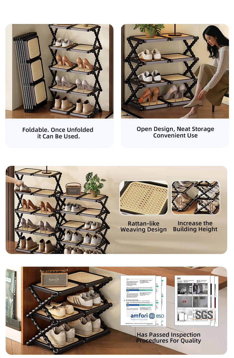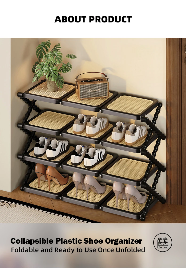 WANUO βιντάζ ράφι παπουτσιών από καλάθι, οργανωτής παπουτσιών μποχού με κλίση, οργανωτής παπουτσιών για είσοδο, ράφι παπουτσιών από πλαστικό |