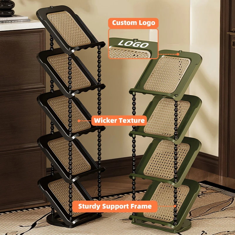 WANUO βιντάζ ράφι παπουτσιών από καλάθι, οργανωτής παπουτσιών μποχού με κλίση, οργανωτής παπουτσιών για είσοδο, ράφι παπουτσιών από πλαστικό |