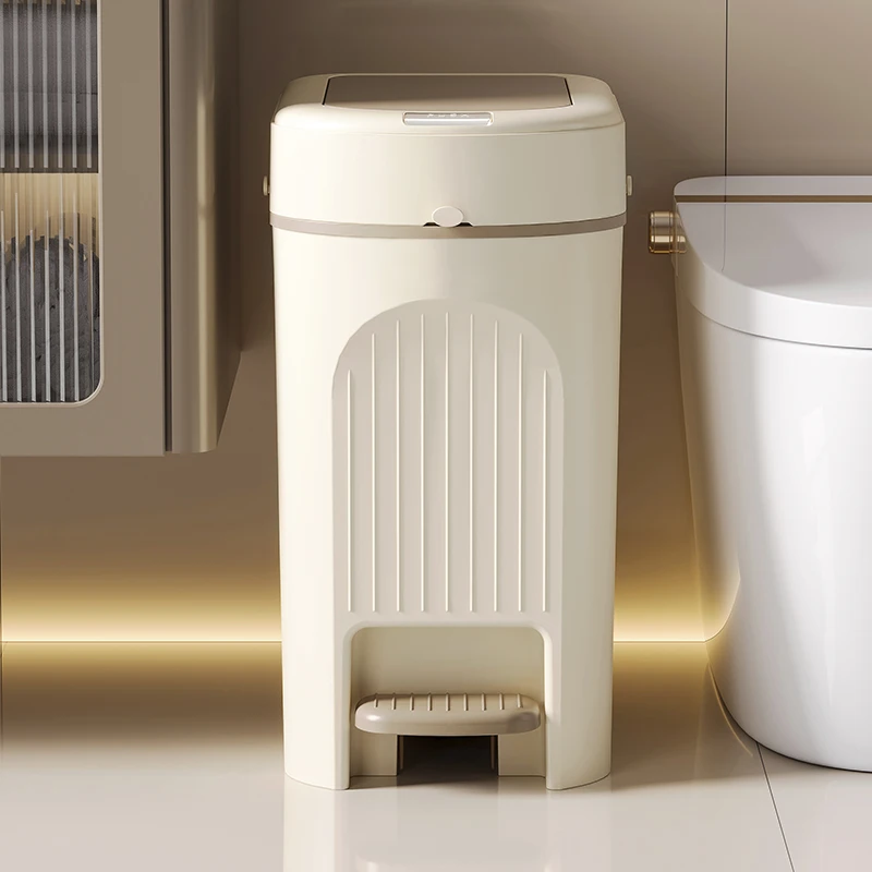 WANUO 押しボタン式15L容量ゴミ箱 バスルーム/キッチン用押しつまみ式プラスチックゴミ箱 |