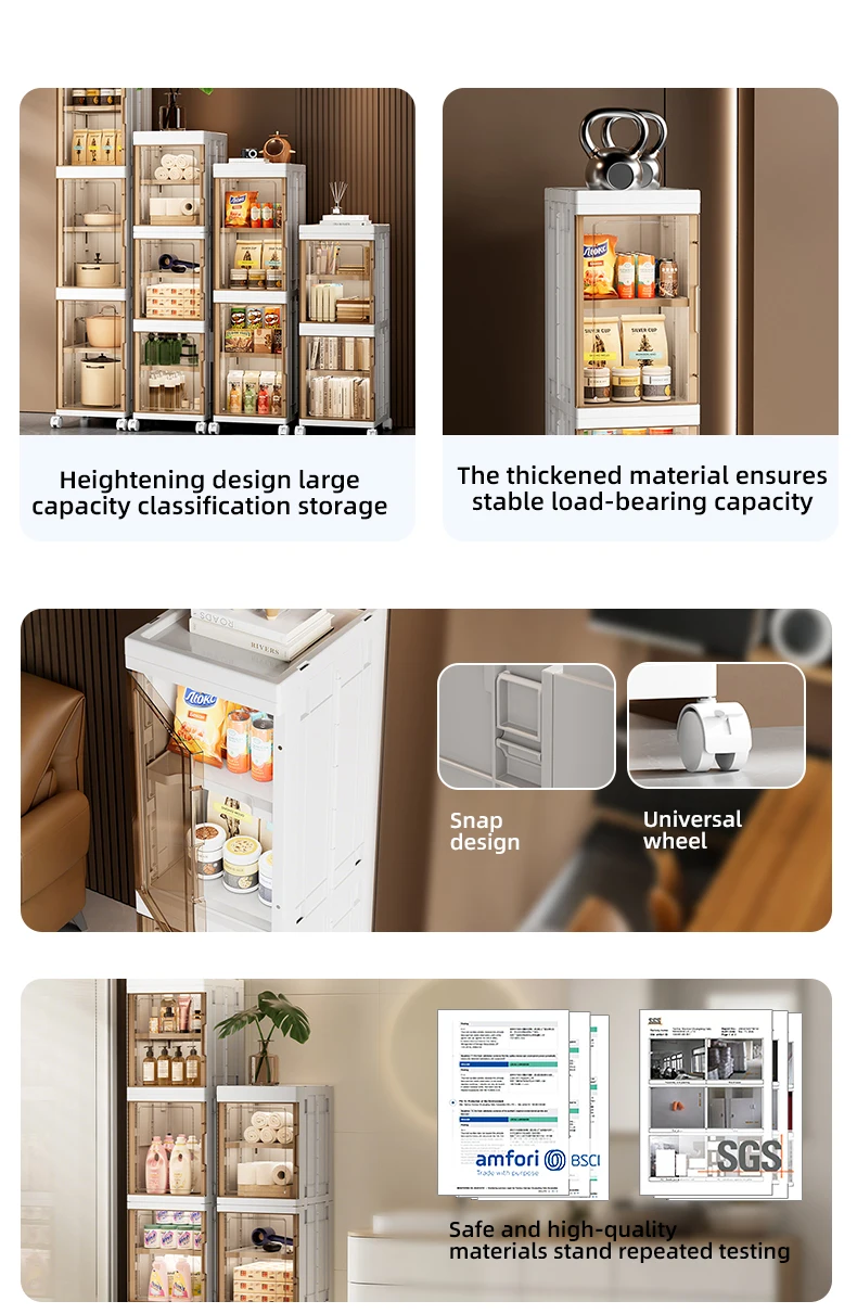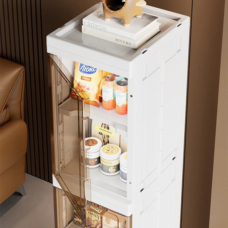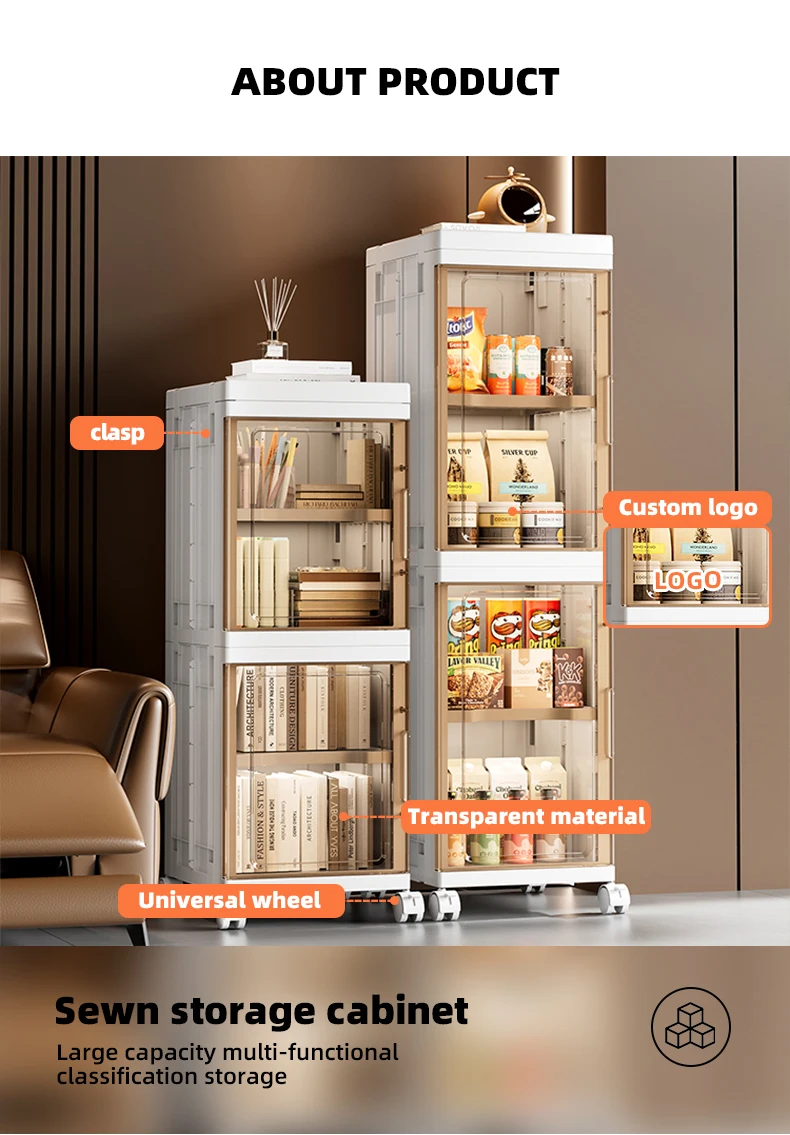 WANUO Қоңыр және жартылай мөлдір көп мақсатты жұқа тік ыдыстар қоймасы, жылжымалы тік үй ыдыстар қоймасы дөңгелектермен |
