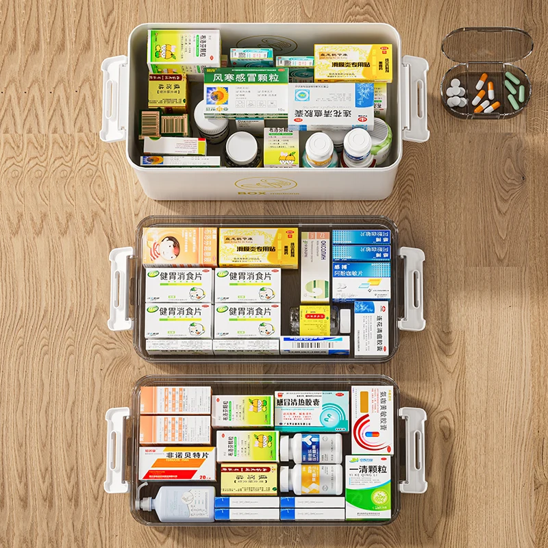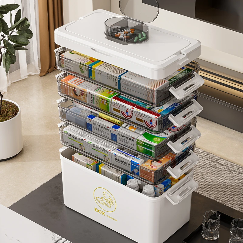WANUO 1/2/3/4/5-Tier Home Stackable Medicine Storage Box Portable Medicine Organizer with Removable Drawers |