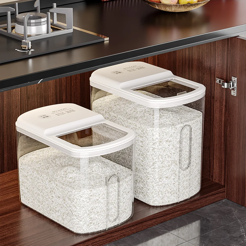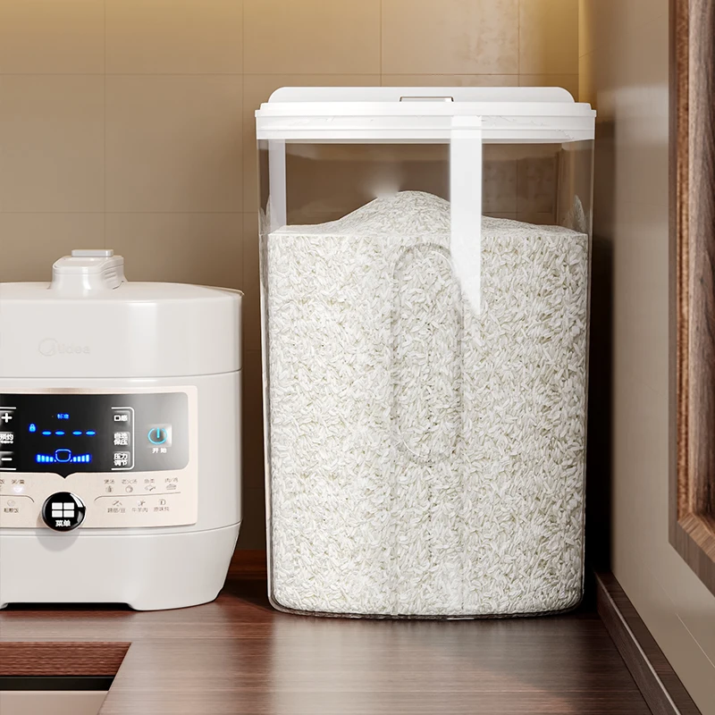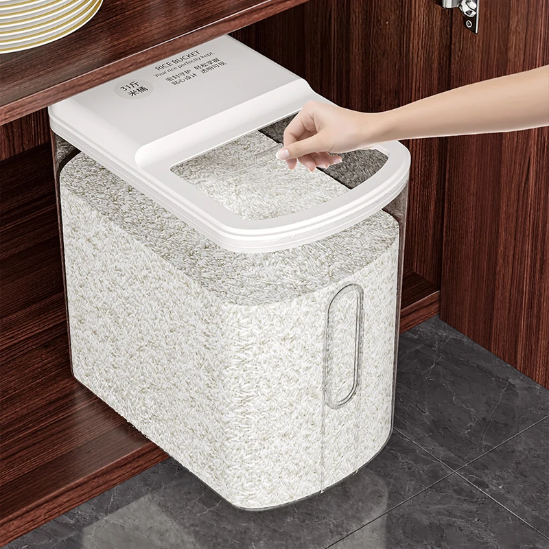 WANUO 15.5KG Rice Capacity Airtight Transparent Rice Storage Container Food-Grade Rice Container with Sliding Push-Open Lid |