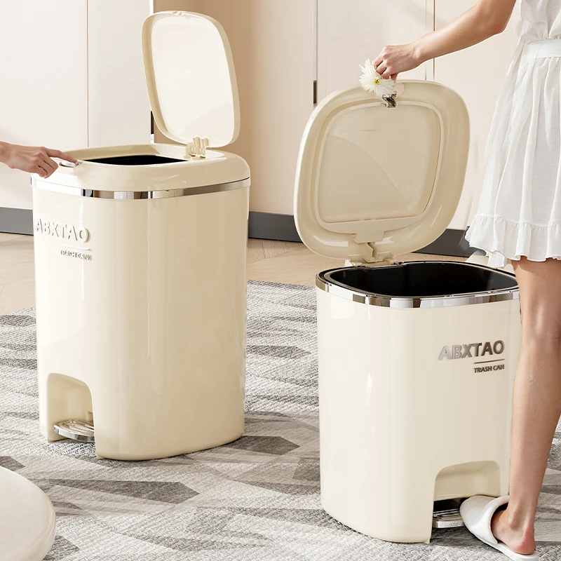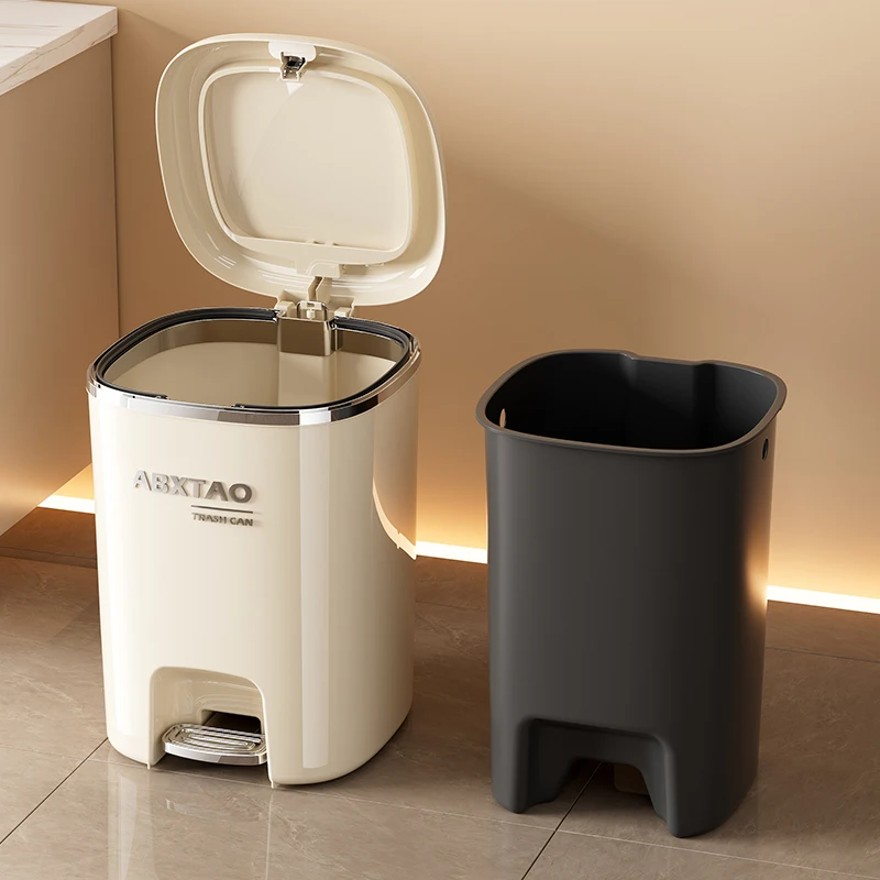 WANUO 15L/20L Kitchen Trash Can Plastic Trash Can Step-On Trash Can with Removable Inner Bucket