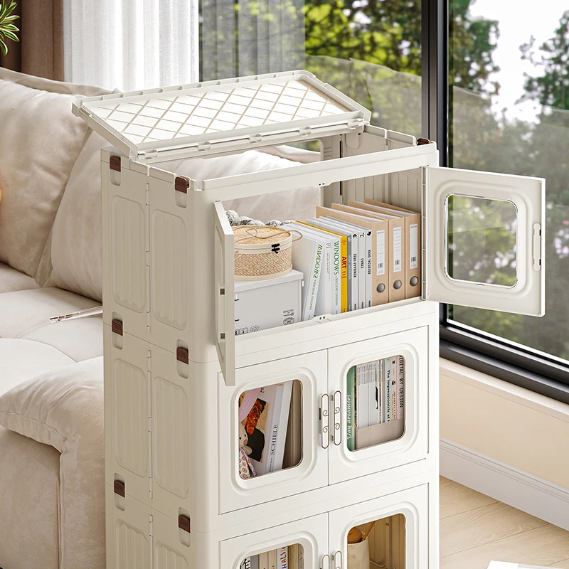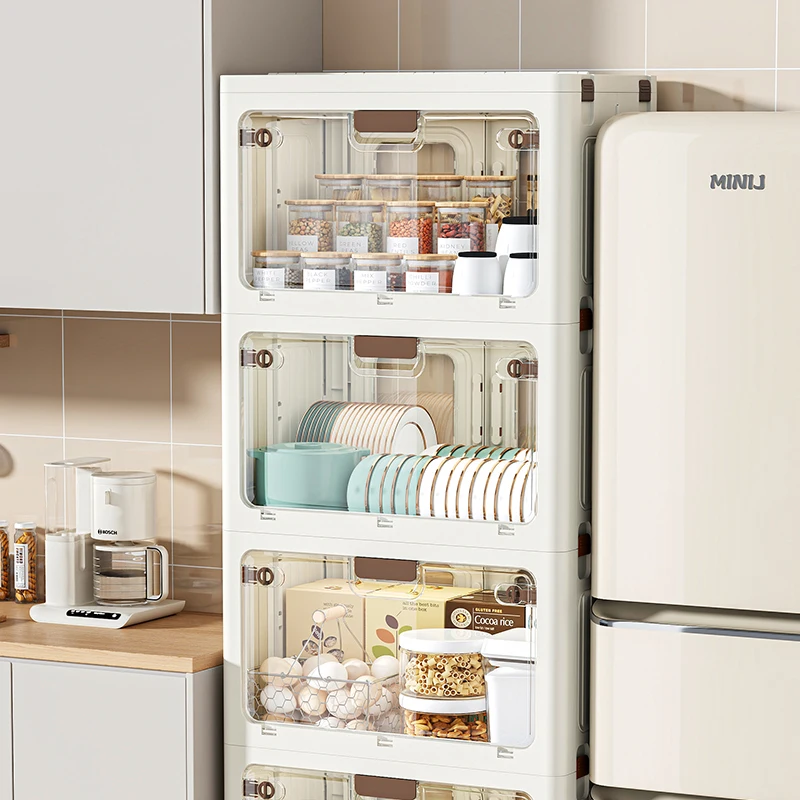 1. Foldable Design, Easy To Transport. 2. Double-Sided Transparent Cabinet Doors Make It Easy To Find Needed Items.