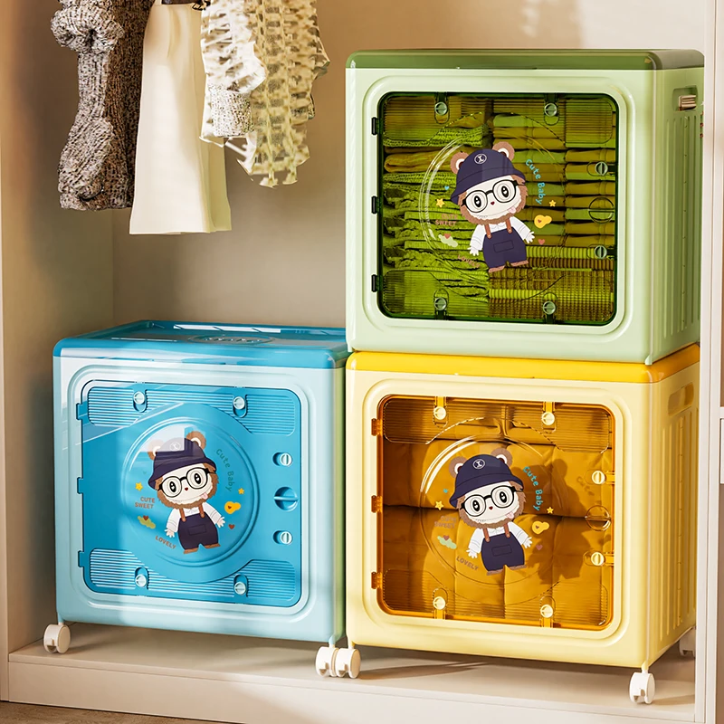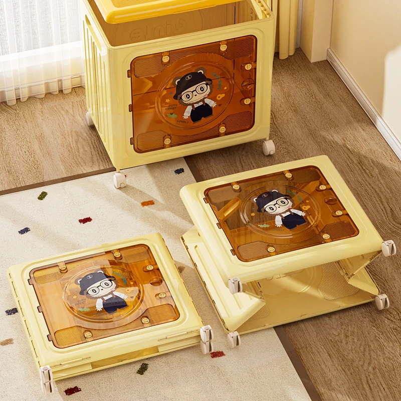 WANUO Collapsible Kids Toy Storage Box Home Plastic Storage Box Cute Kids Toy Storage Box with Wheels