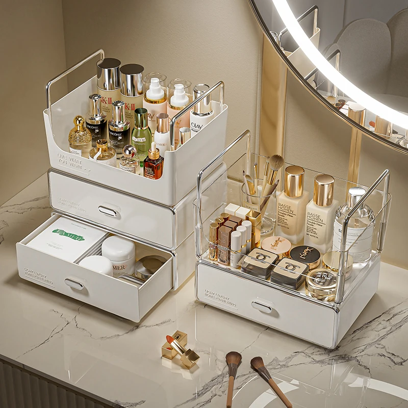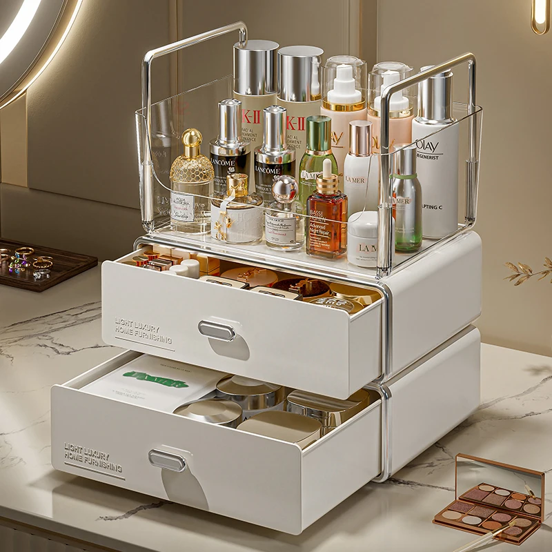 WANUO Double Drawers Makeup Organizer Clear Top Compartment Makeup Organizer Plastic Makeup Organizer |