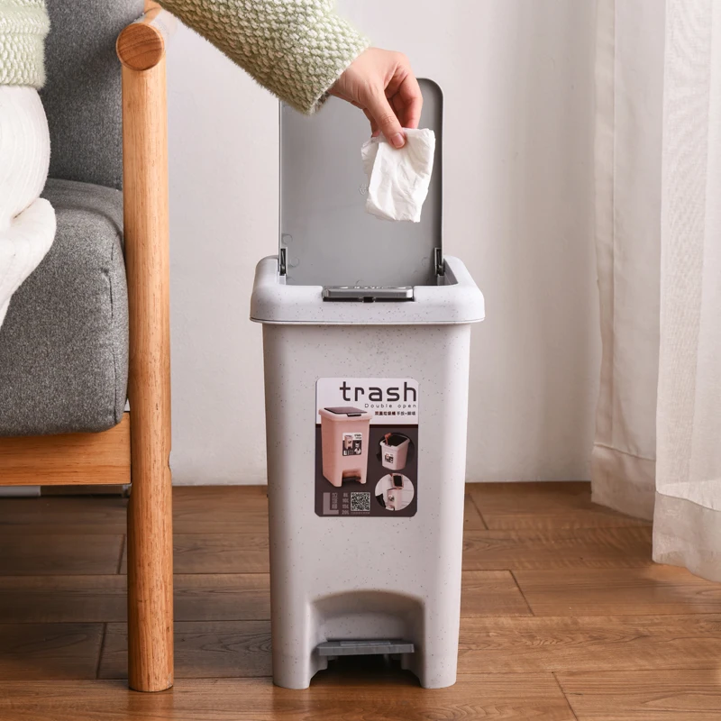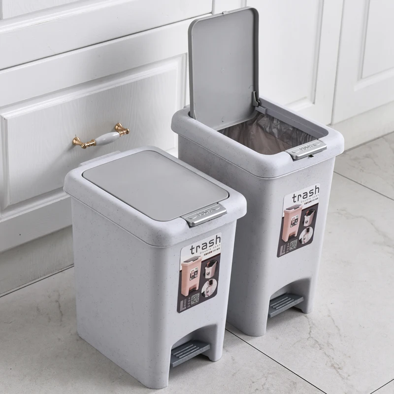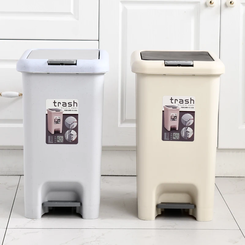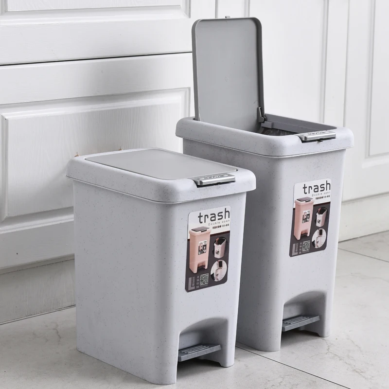 WANUO Home Use Eco-friendly Plastic Foot Pedal Trash Bin Home Trash Can with Rolling Cover for Kitchen and Bathroom Storage |