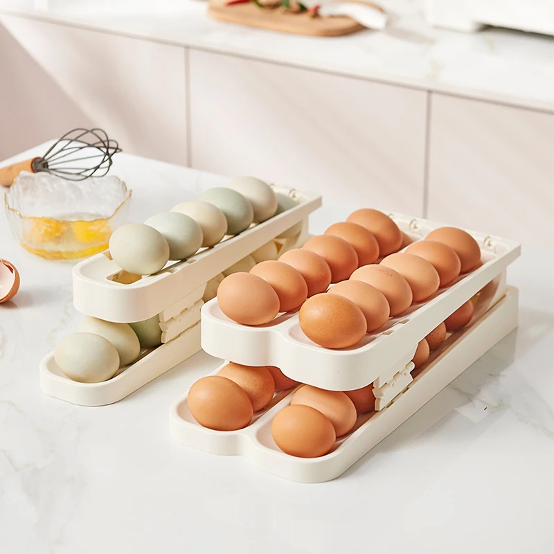 WANUO Multi-Tier Self-Rolling Egg Organizer Kitchen Plastic Egg Organizer Fridge Egg Organizer for Fridge