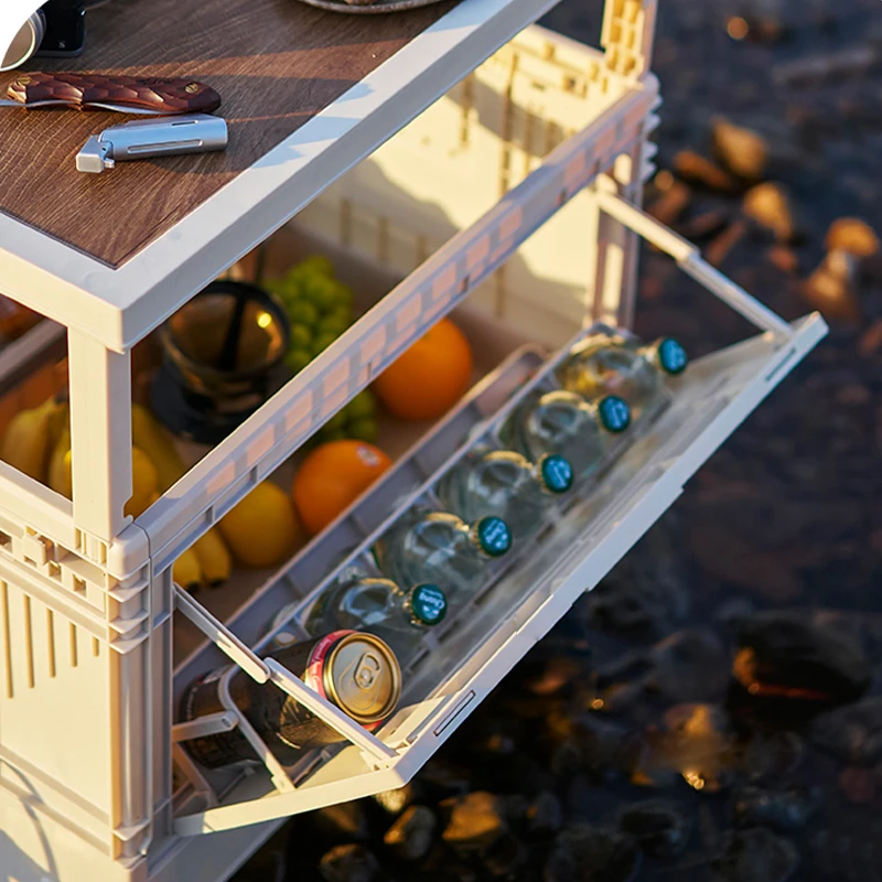 Camping Storage Box + 3 Table: 60*40*22cm Unfolded Size: 240*40*69cm
