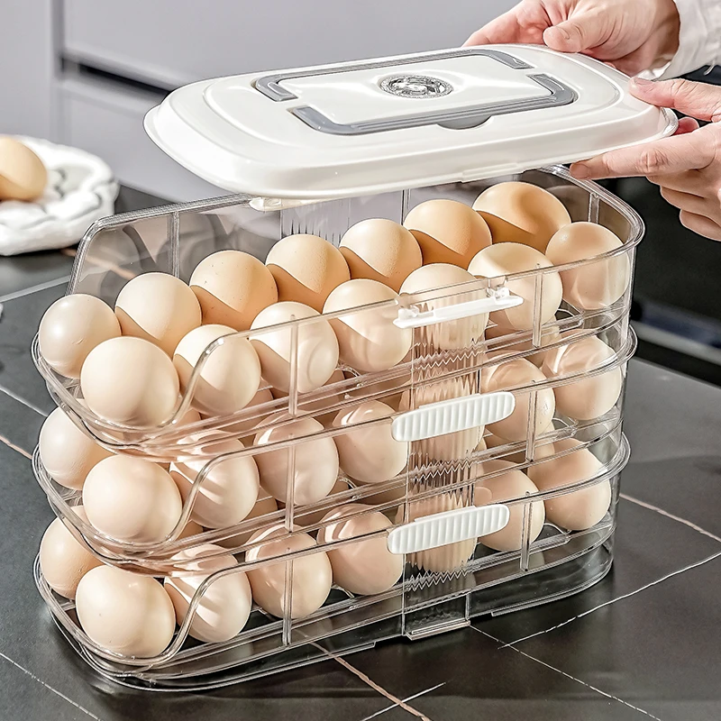 Wanuo Self-Rolling Egg Holder Single-row/Double-row Egg Holder Easy to Take Fridge Egg Organizer with Concealed Handle |