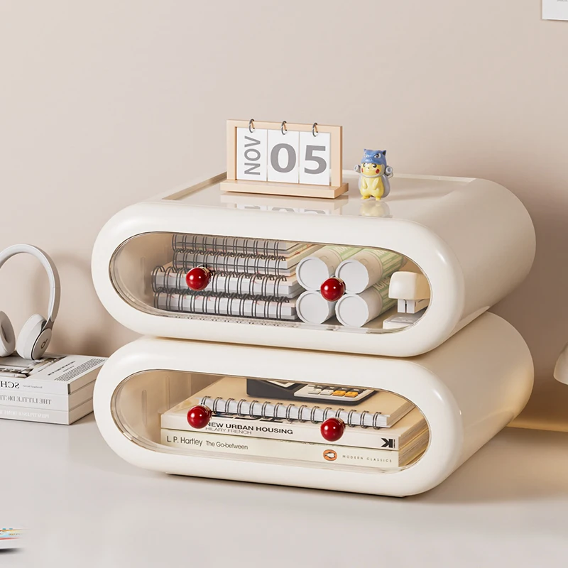 WANUO Stackable Plastic Drawer Organizer Dustproof 1/2/3-Tier Desk Storage Box Home Office Storage Box |