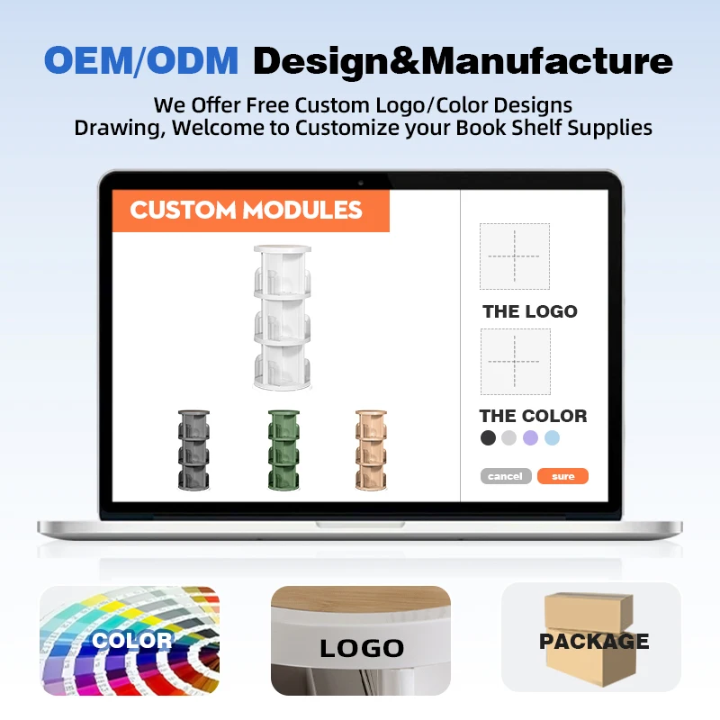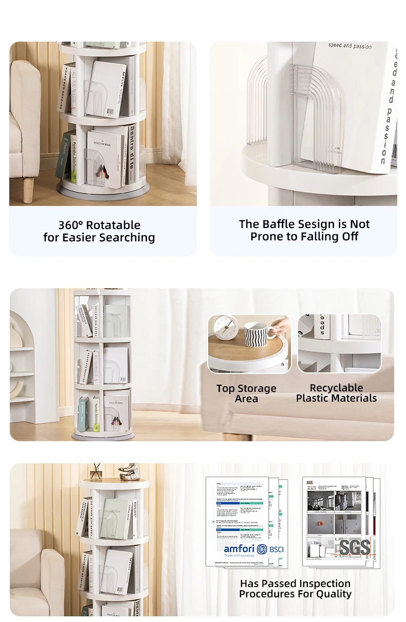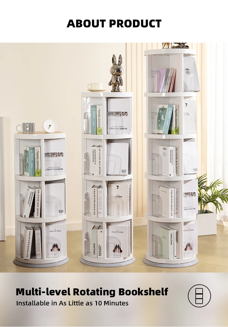 WANUO 360° Döner Basit Kitaplık 3/4/5-Katlı Saf Beyaz Kitaplık Plastik Minimalist Kitaplık |