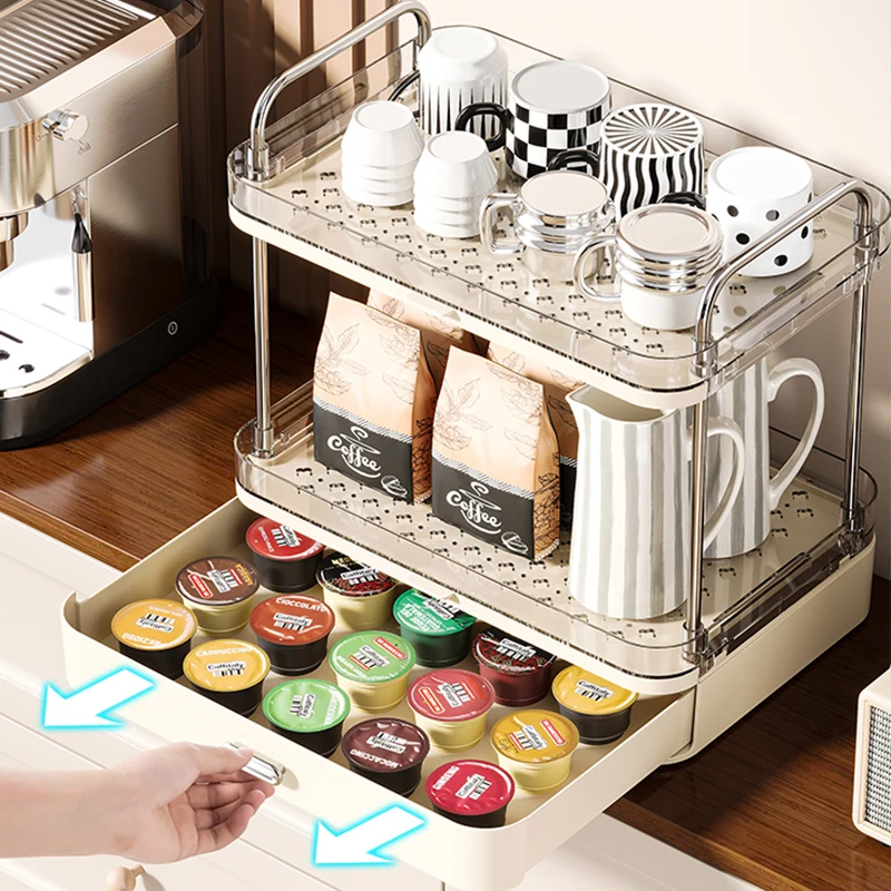 WANUO Çift Katmanlı Plastik Bardak Tutucu Fincan Tutucu Cam Bardak Saklama Raflı Şarap Bardağı Raflı Çekmece ile