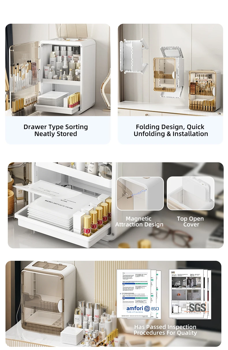1. Sınıflandırılmış ve Merkezi Depolama İçin Çok Bölmeli Makyaj Organizatörü. 2. Görülebilir İç Yapılı Şeffaf Kapak, Gerekli Kozmetik Ürünlerin Bulunmasını Kolaylaştırır.