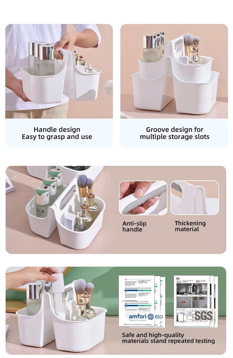 WANUO İki Bölmeli El Arabası Alışveriş Sepeti Duş Malzemeleri Depolama Sepeti El Kolay Büyük Boy Plastik Depolama Sepeti |